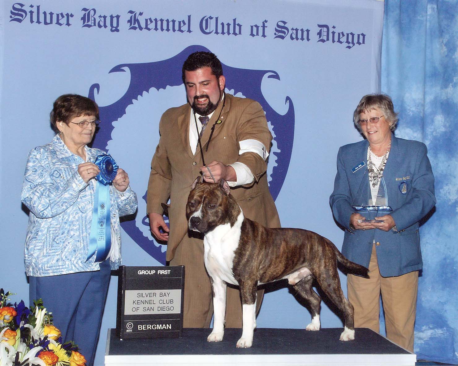 American Staffordshire Terrier GCH CH Alpine's Highwayman RN18739609 5/26/2009, Breeder: Owner. By CH Benmars Ring Master -- CH Alpine's Jamaica Me Crazy. Zane Smith & Ed & Karen Thmason & Cyril Lefloch. Dog. Ed Thomason, Agent. |