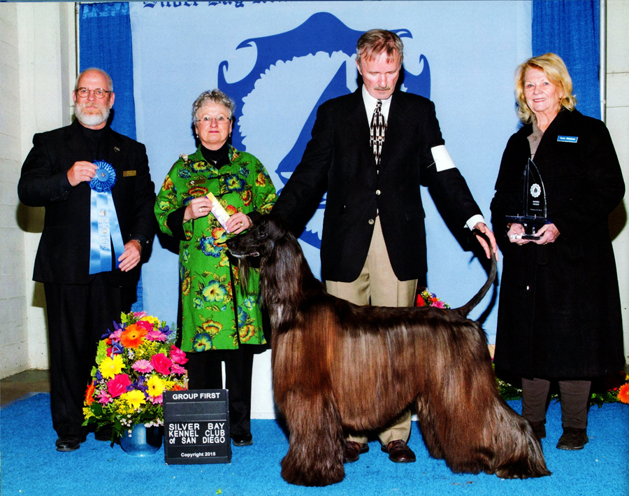 AFGHAN HOUND GCH CH JAKAR PAMIR ANAM CARA SUMMER STORM, HP44121801 8/20/2012, Breeder: Amy Donnell and Tara Schultz. By CH Jakar Shekinah Sage Advice -- CH Jakar Kiavu Made You Look. Georjean & Donald Jensen. Bitch. Bruce Schultz, PHA, AKC Registerd Handler.
