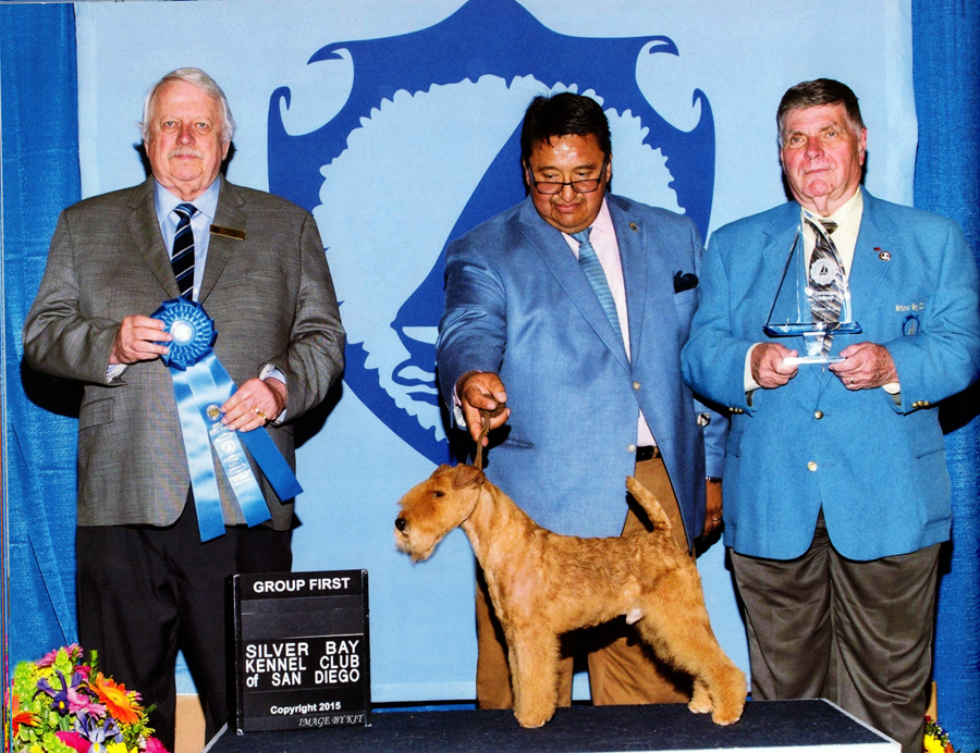 LAKELAND Terrier GCH CH BROCAIR'S HRH PRINCE HARRY, RN26686407 3/30/2014. Breeder: Marcella Mitchell, Danielle Green. By CH Snowtaires Go For The Gusto RA -- CH Brocairs Red Delicious at Revelry RN. Lisa Rogan. Dog. Gabriel Rangel, AKC Registered Handler. |
