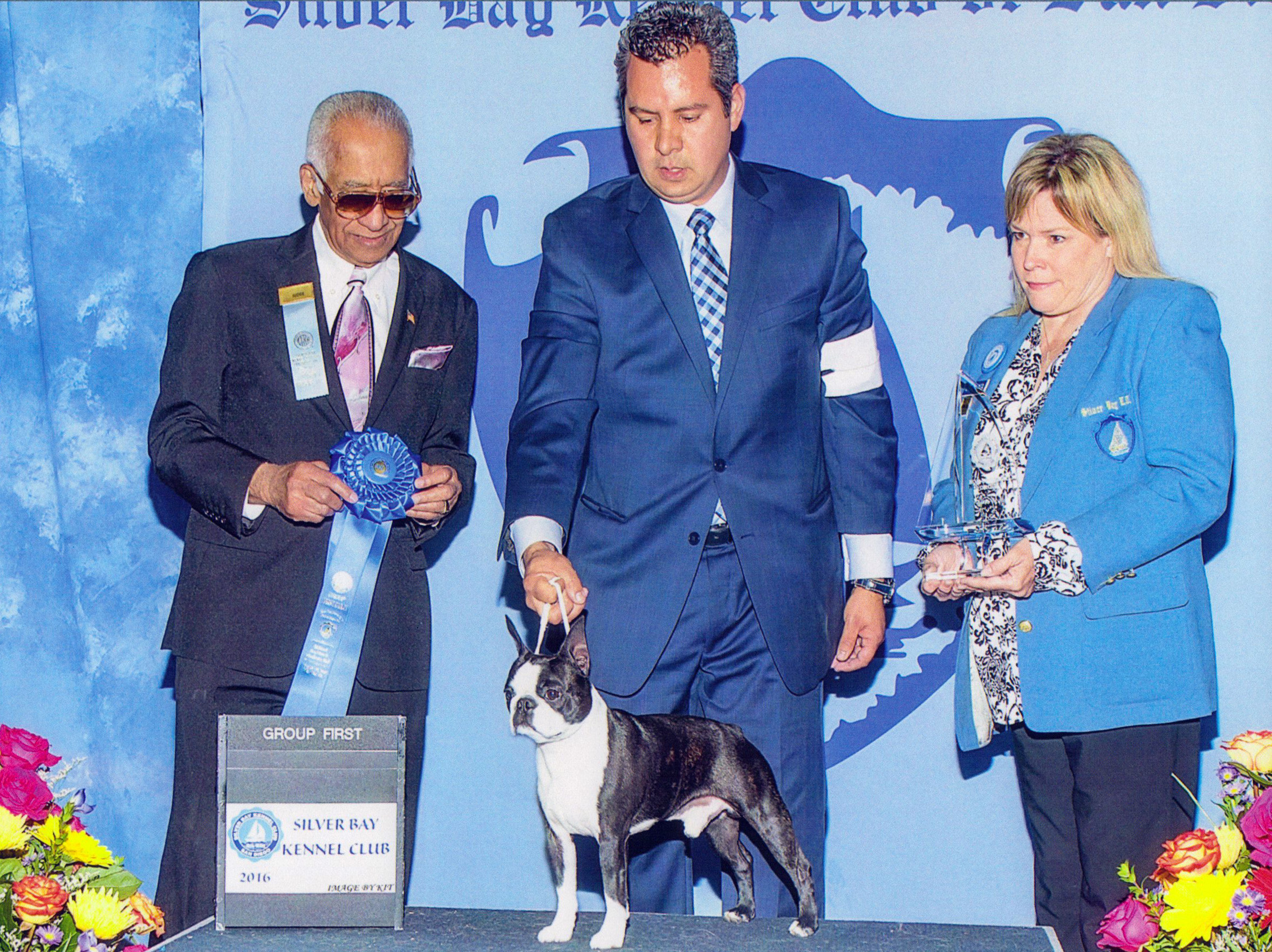 BOSTON TERRIER GCHP CH SABE'S SIMPLY INVINCIBLE, NP35017201 8/5/2013, Breeder: Sharon Saberton. By GCH Candar's Fame Monster -- Sabe's Simply Scrumptious. Joe & Carla Sanchez & Sharon Saberton. Dog. Susie Olivera, Agent. |